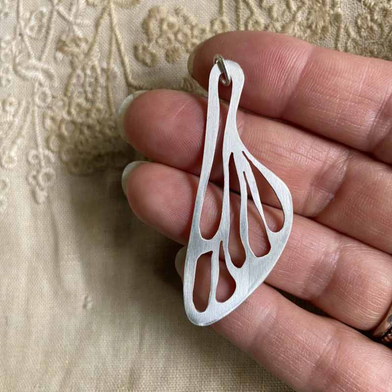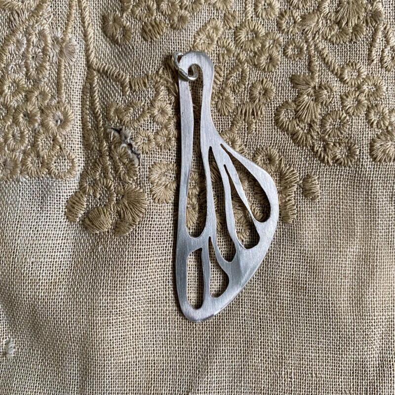 Deze elegante hanger is met de hand gemaakt uit 925 zilver, in de vorm van een vleugel. Het ontwerp is eenvoudig maar krachtig; natuurlijk, eerlijk en verfijnd. Deze hanger draag ik graag als symbool van lichtheid, vrijheid en verbondenheid met de natuur. Eenvoudig en puur - een sieraad dat lichtheid ademt en herinnert aan wat ons optilt.